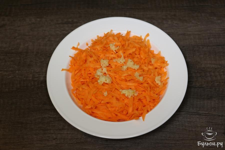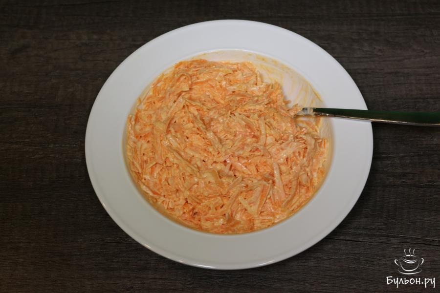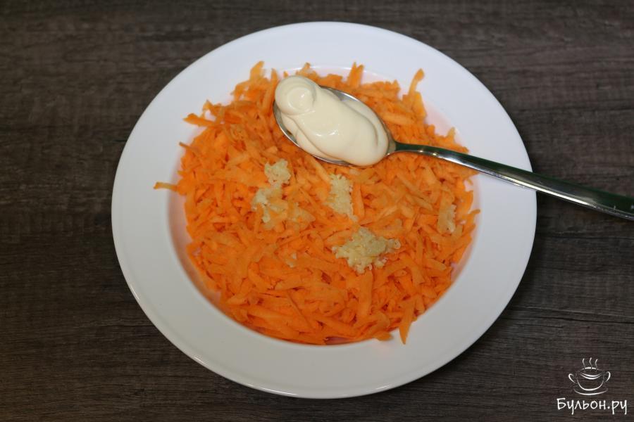 6. При необходимости салат подсолите. Я этого не делала, так как в используемом мной майонезе соли и так достаточно. Готовый салат советую убрать в холодильник хотя бы на час, чтобы морковь стала чуть помягче и чтобы салат впитал в себя аромат чеснока.