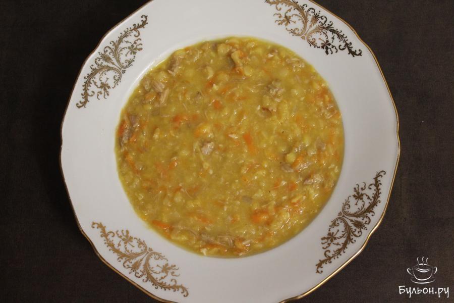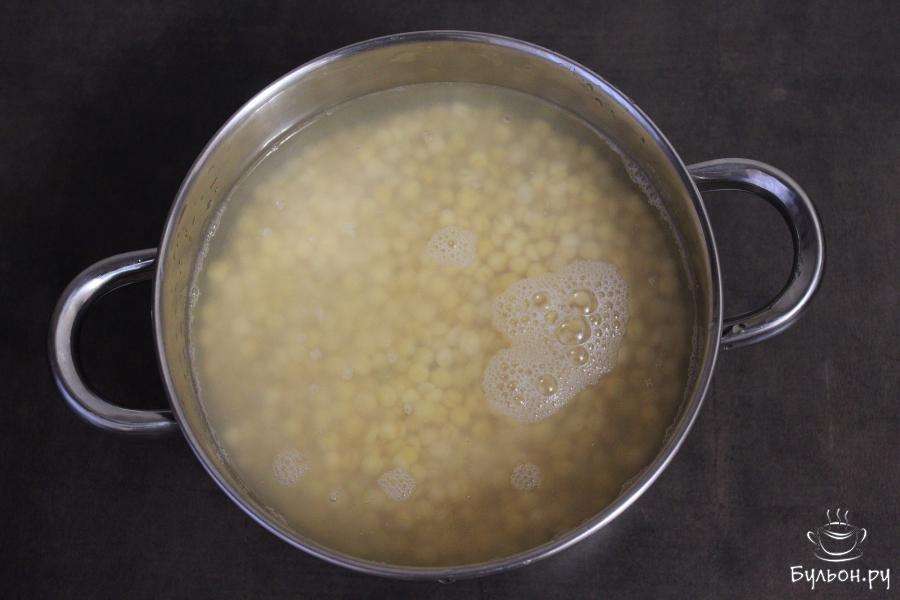 1. Замочите горох на ночь в большом количестве воды. Утром слейте с гороха воду и тщательно промойте под проточной водой. Пересыпьте горох в кастрюлю, залейте чистой водой и поставьте варится на огонь. Когда вода закипит, снимите пенку и варите горох до мягкости, примерно 35-45 минут.