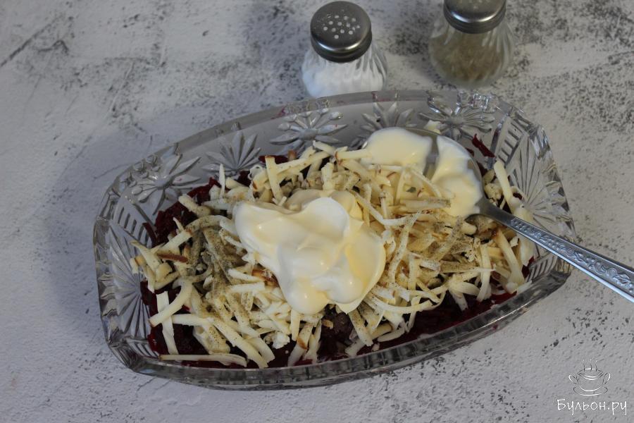 Всем советую приготовить очень вкусный салат со свеклой и копченым сыром. Помимо того, что салат получается вкусным, он еще и бюджетный, что в нынешней ситуации очень актуально для многих семей. Оригинальный вкус этому салату придает именно копченый сыр. По сравнению с другими видами сыров, он еще и стоит недорого. Свеклу можно отварить или запечь заранее, но я покупаю уже готовую отварную свеклу, что сокращает время на готовку этого салата до 15-20 минут.