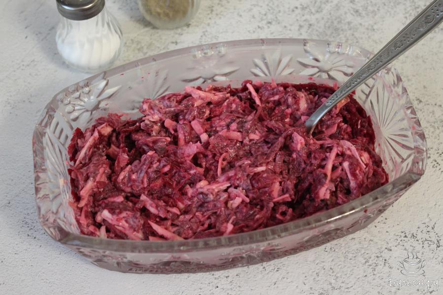 5. Все ингредиенты перемешайте. Салат готов. Я советую дать салату немного постоять в холодильнике, так он получится еще более ароматным.
