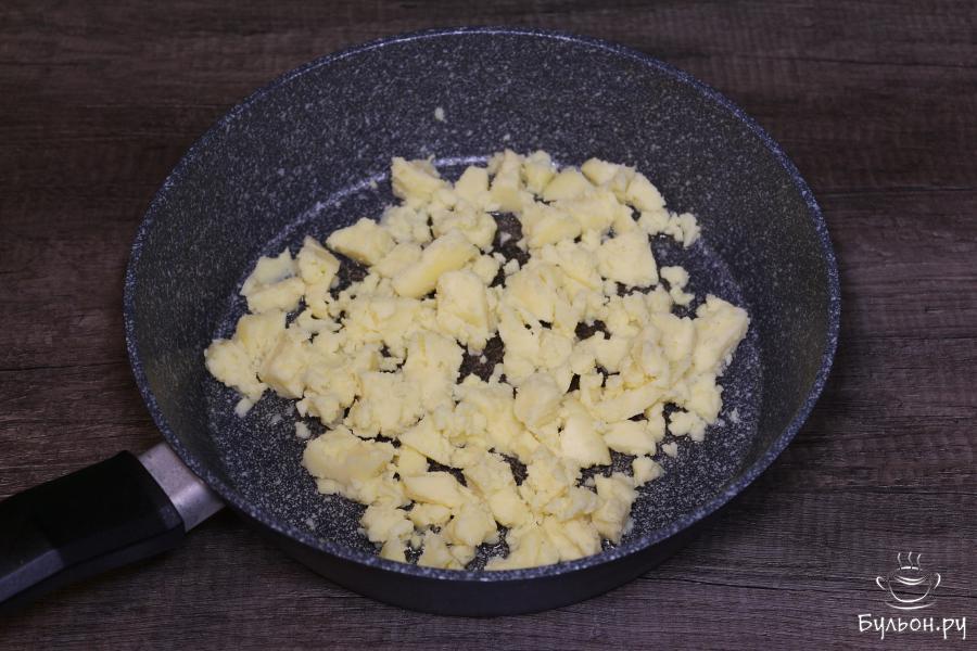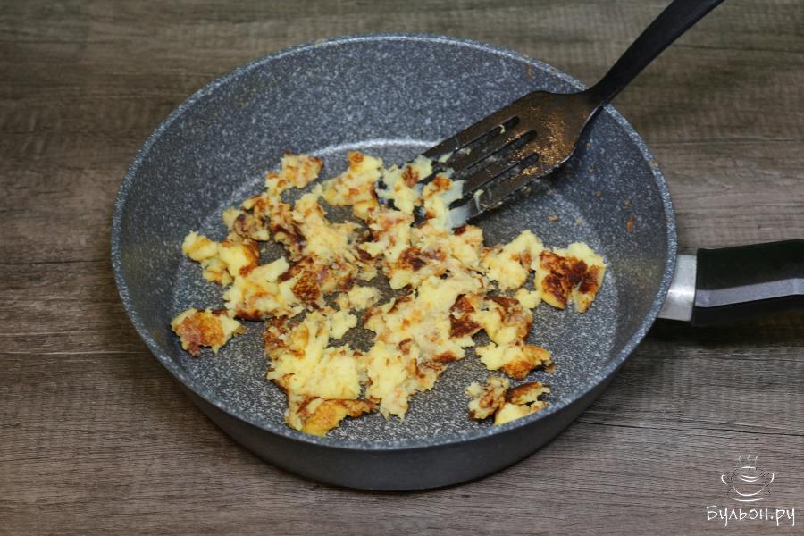 4. Только что приготовленное пюре подайте в качестве гарнира, а вот оставшееся пюре поставьте в холодильник, а на следующий день готовьте, обжаривая его. Так, влейте на сковороду растительное масло и выложите необходимое количества картофельного пюре.