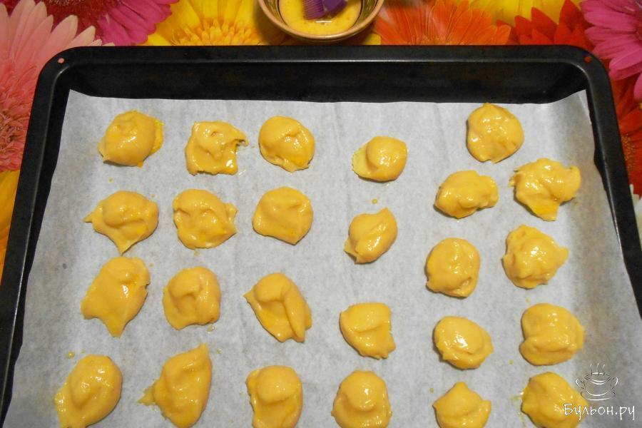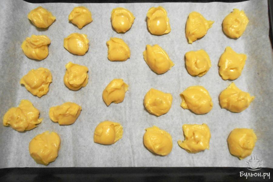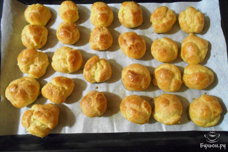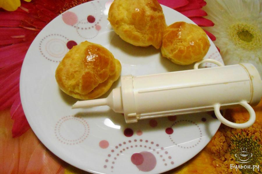 12. Заполнить профитроли кремом, протыкая их. Либо сделайте сбоку надрез, и начините профитроли кремом с помощью чайной ложки.