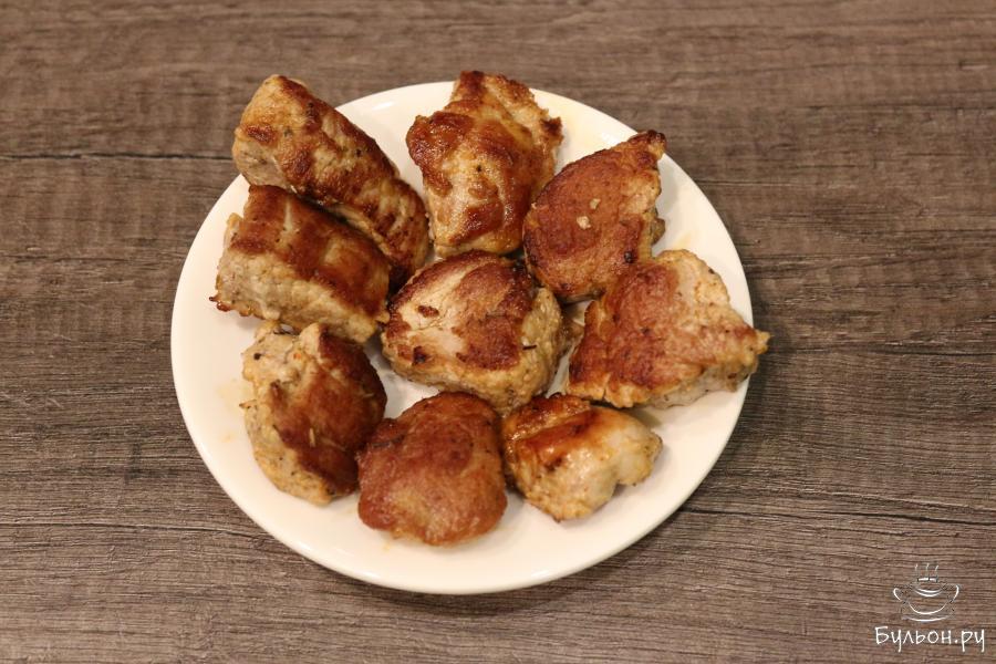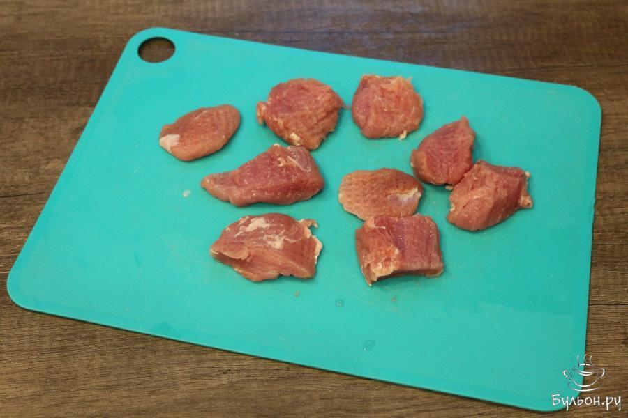 1. Вырезку свинины вымойте и обсушите. Нарежьте мясо крупными кусками. Слегка отбейте кусочки молоточком.