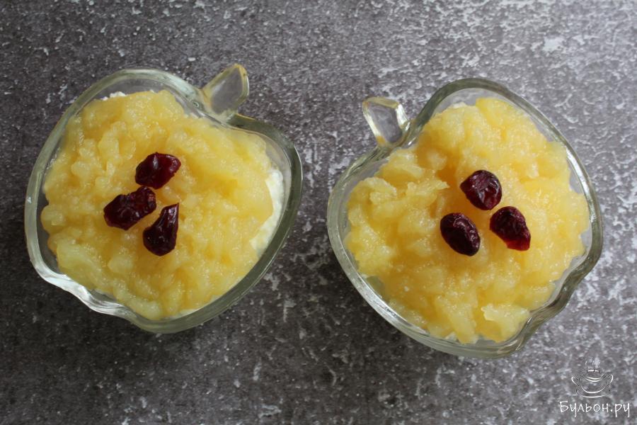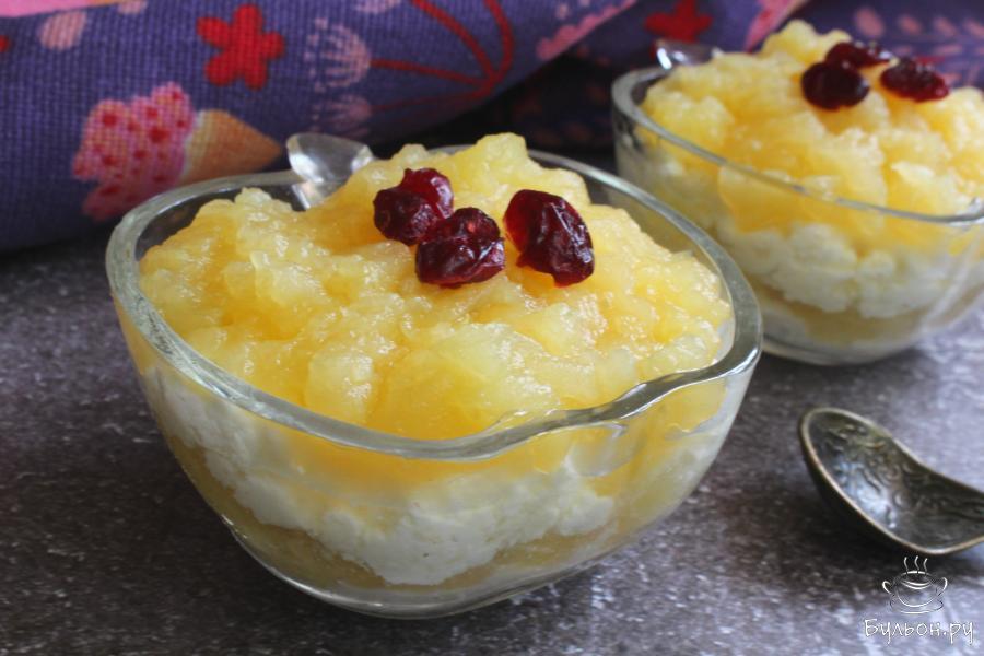 Простой творожный десерт с яблоками отлично подойдет для разгрузочных дней, для легкого перекуса, для завтрака или полдника. Этот десерт не только вкусный, но и полезный, он легкий, нежный, душистый. Готовится десерт за считанные минуты из доступных продуктов. Яблоки для приготовления берите сладкие, тогда не нужно будет добавлять сахар. Ягоды для украшения можно взять совершенно любые на свой вкус, а можно вообще обойтись без них. Такой десерт можно охладить перед подачей и тогда он станет освежающим лакомством для жарких дней.
