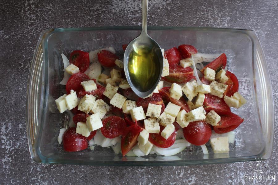Помидоры с брынзой в духовке, можно подать как салат или как овощную закуску, теплую или холодную, она вкусная в любом виде. Закуска легкая, невероятно сочная, ароматная и вкусная. Она отлично подходит и для повседневного меню, и для разгрузочных дней, и для людей, придерживающихся вегетарианского питания. Готовится закуска на скорую руку и из доступных продуктов. Помидоры для приготовления берите сладкие, небольшие, мясистые. В процессе приготовления помидоры становятся значительно кислее, поэтому сладкие сорта в самый раз.