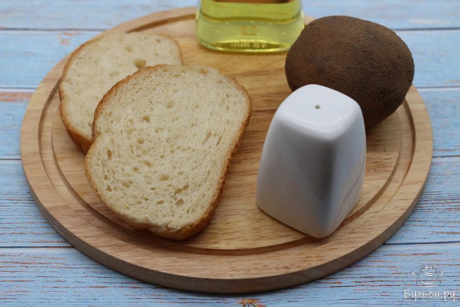 3. Отрежьте 2 кусочка булки или используйте уже купленный в магазине нарезной. Намажьте на бутерброды картофель, равномерно утрамбуйте его слегка.