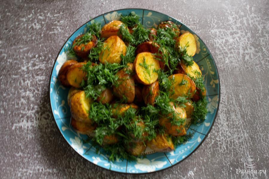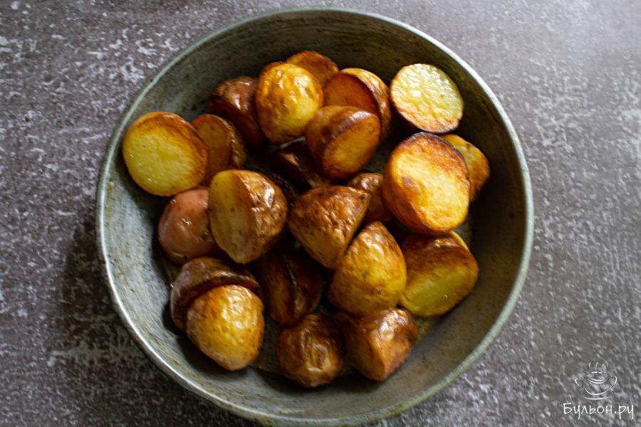 5. Перемешивая, жарить картофель 20-25 минут, до красивой румяной корочки. Готовый картофель выложить на блюдо.