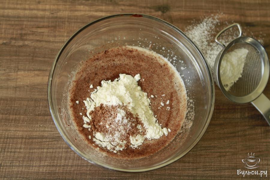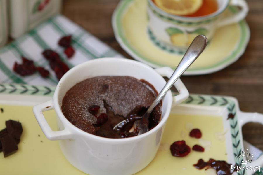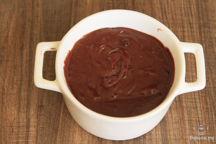 7. Форму для запекания слегка смазать сливочным маслом и заполнить шоколадным тестом. Десерт выпекать в разогретой духовке 10-12 минут при 185 гр.