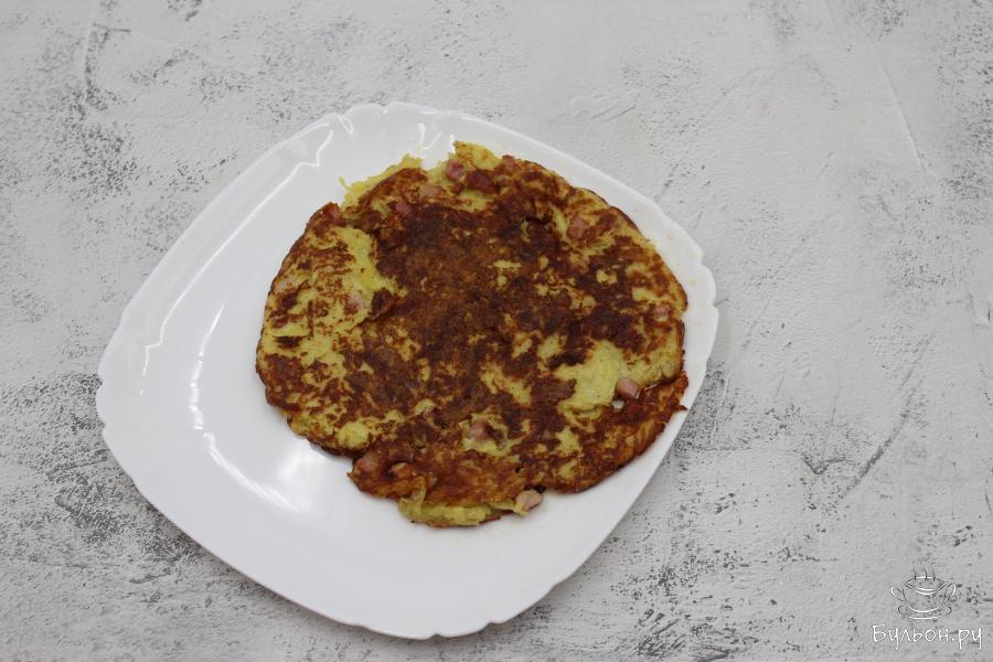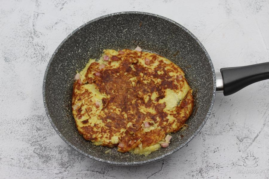 Хрустящий картофельный омлет с грудинкой подойдет, как на завтрак, так и на ужин в качестве гарнира. Готовится данный омлет очень просто, требует минимум времени и самых простых продуктов, которые, наверняка, есть в доме у каждой хозяйки. Сам омлет получается сытным. Для разнообразия и эксперимента, можно, также в состав данного омлета добавлять шампиньоны, колбасу, помидоры, сыр и многие другие продукты, на ваш вкус.