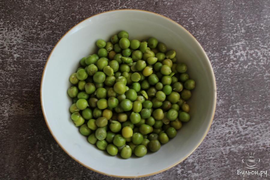 2. Свежий зеленый горошек промыть и варить 15 минут после закипания воды. Откинуть горошек на дуршлаг.