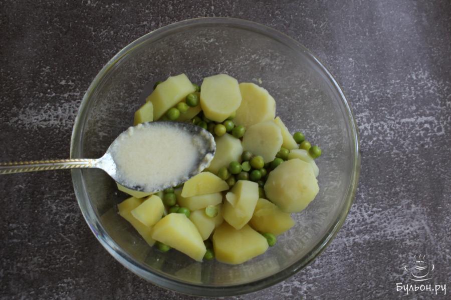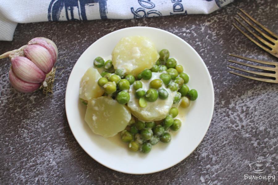 Молодой картофель со свежим зеленым горошком легкое и вкусное блюдо, которое надо, хоть раз, приготовить в сезон весенних молодых овощей. Блюдо получается ароматное, насыщенное и полезное. Такой картофель можно подать, как гарнир или предложить, как основное блюдо. Готовится картофель с горошком очень просто и быстро. По желанию, в это блюдо можно добавить и другие любимые пряности. Сыр можно использовать твердый или мягкий.
