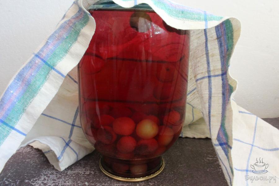 5. Залить сироп в банку, закрыть банку под ключ. Покатать банку на боку, чтоб убедиться, что банка хорошо закрыта.