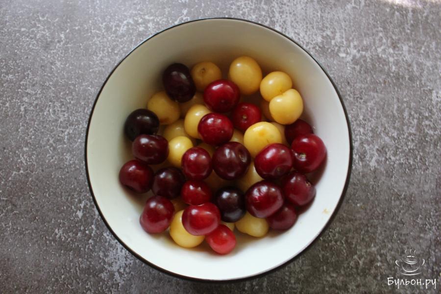 Компот из белой черешни и вишни на зиму, поднимет вам зимой настроение, и своим вкусом, и красивым цветом. Компот получается очень вкусный, немного терпкий, насыщенный. Количество сахара можно увеличить по своему вкусу, пробуйте сироп в процессе приготовления. В такой компот, по желанию, можно добавить лимонный сок или немного корицы, а можно оставить так, напиток вполне самодостаточный. Количество ингредиентов дано на одну трехлитровую банку.