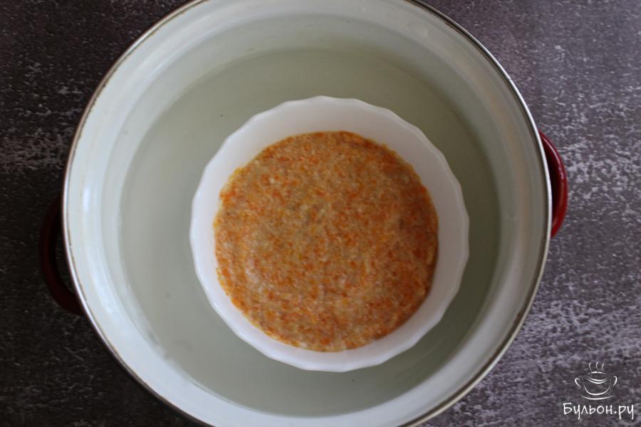 9. Суфле можно приготовить в пароварке или на водяной бане. Накроем формочку крышкой и готовим суфле минут 15-20.