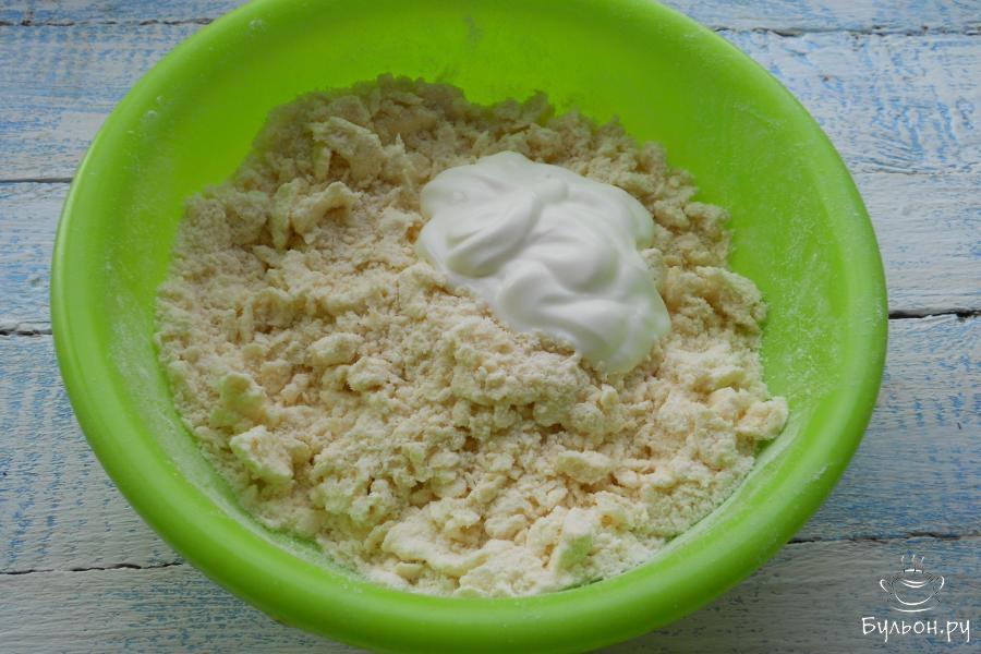 4. Быстро замесить тесто. Вначале тесто будет крошиться, складывайте его в шар. От теплоты рук тесто станет мягче и отлично соберется.