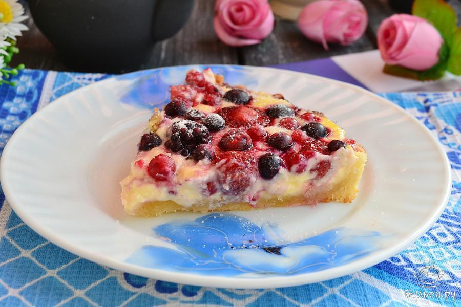 Открытые песочные пироги сейчас пользуются большой популярностью у хозяек - они легко готовятся и получаются очень вкусными. Предлагаю вам попробовать отличный песочный пирог с творогом и ягодами. Пирог получается очень нежным и ароматным, да еще и полезным. В летнее время для пирога используют свежие ягоды, зимой - замороженные. Пирог можно подать к чаю или с молоком, а также, предложить его в качестве десерта.