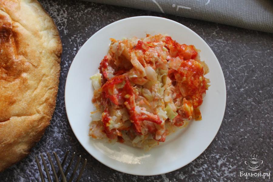 Запеканка из капусты с фаршем а-ля "Ленивые голубцы" для любителей быстрых и простых блюд, которые готовятся в духовке. Запеканка получается очень сочная, сытная, вкусная и нежная. Такое блюдо хорошо готовить, когда нет времени долго быть на кухне. Готовится запеканка просто. Если у вас под рукой нет свежих помидоров их можно заменить на 3 ст. л. томатной пасты и 250 мл. воды. Если вы не употребляете майонез, то его можно заменить на 200 мл. сметаны.