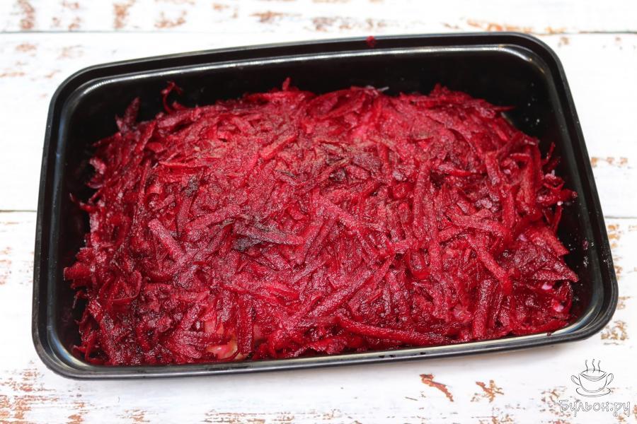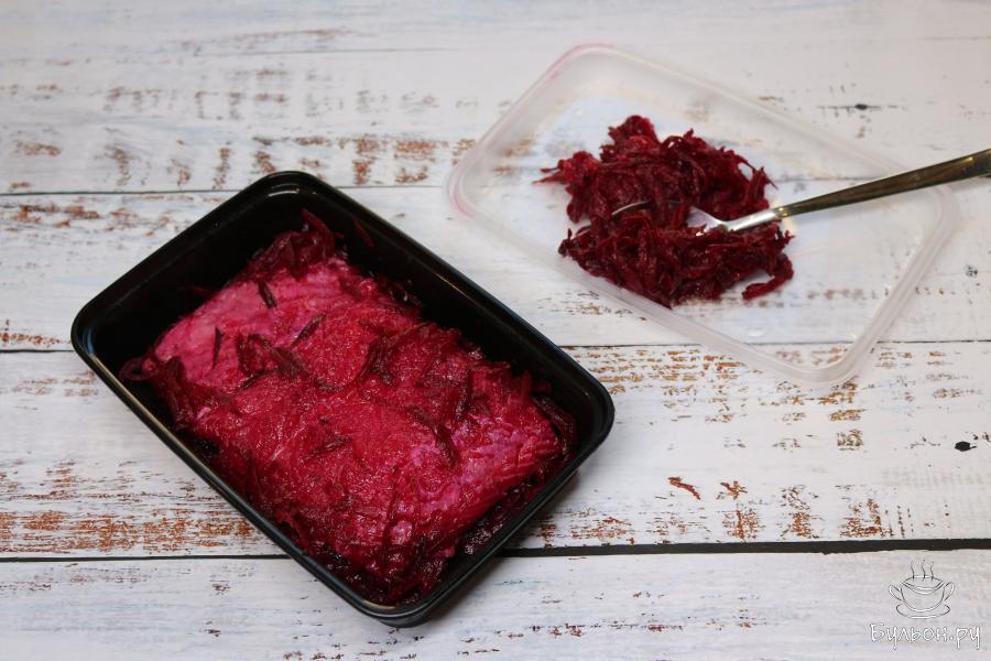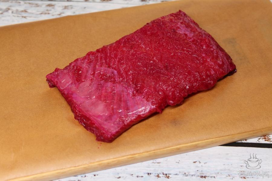 5. Продолжайте засаливать рыбу в течение 3 дней. Если образуется свекольный сок, слейте его. По истечении 3 дней, с рыбы удалите свекольную массу, промойте ее под проточной водой, после чего промокните бумажными полотенцами.