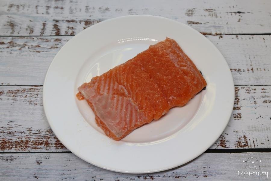 4. Филе равномерно посыпьте смесью солью и сахара с двух сторон, не втирайте. Также равномерно выложите свекольную массу на рыбу. Лосось в свекле положите в контейнер, закройте его крышкой. Контейнер с рыбой не убирайте в холодильник еще 3 часа. После поставьте его в холодильник.