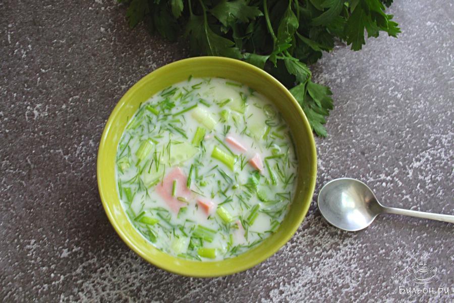 В самую жару, летом, очень хочется холодных супов. Один из самых распространенных холодных супов у нас - это окрошка. Готовят окрошку разнообразными способами: на квасе, на кефире, на простокваше и сметане. Все варианты вкусные. Сегодня я предлагаю приготовить окрошку на натуральном йогурте, она очень вкусная. Если вам будет недостаточно кислоты, то в готовую окрошку можно добавить лимонный сок. Если же у вас есть под рукой кисломолочный напиток Тан, то можно добавить его вместо воды. Он добавит и кислинку, и сделает окрошку немного газированной.