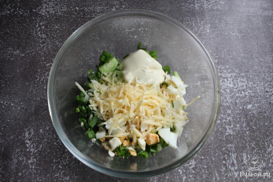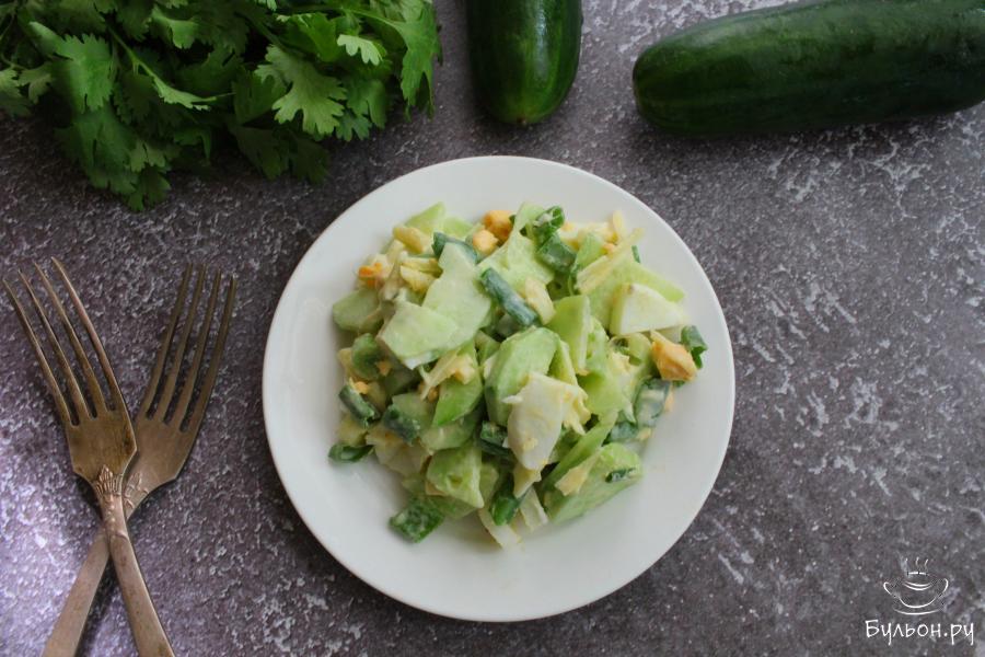 Если под рукой есть твердый сыр и овощи, то всегда можно приготовить вкусный салат. Сегодня предлагаю сделать вкусный салат с огурцами, сыром и яйцом. Салат получается насыщенный, нежный, легкий, но одновременно сытный. Такой салат готовится за считанные минут и его приготовление не задержит вас долго на кухне. Сыр для приготовления подойдет любой, твердых сортов. Если у вас нет под рукой сметаны, то ее можно заменить майонезом. Можно сделать половину сметаны, половину майонеза.