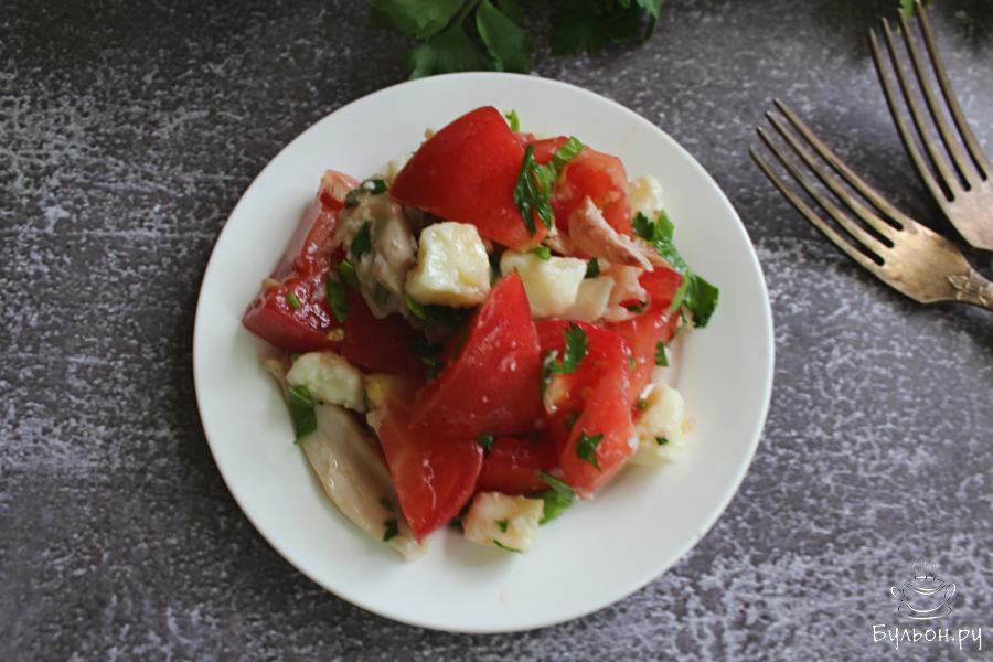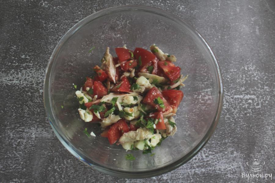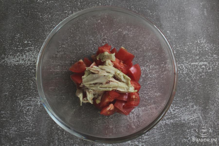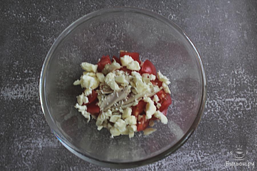 Салат с помидорами, курицей и сыром фета получается легкий, аппетитный, полезный и сочный. Салат готовится просто, но большая часть затраченного времени уходит на то, чтобы отварить куриное мясо. Если же у вас есть готовый вареный кусочек куриного филе, то вы приготовите салат за пять минут. Салат понравится многим. Для приготовления этого салата берите сладкие сочные помидоры. Если вы любите майонез, то такой салат, вместо масла, можно заправить майонезом.