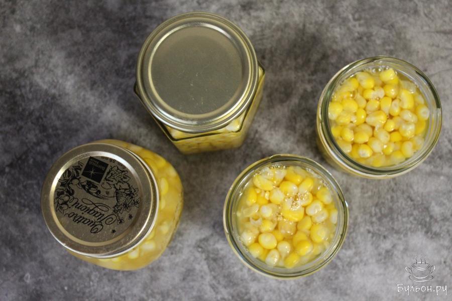 4. Сами зерна переложить по стерилизованным баночкам и залить приготовленным рассолом. Банки закрыть стерилизованными крышками.