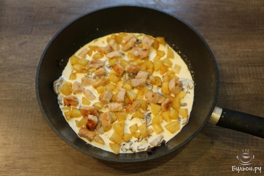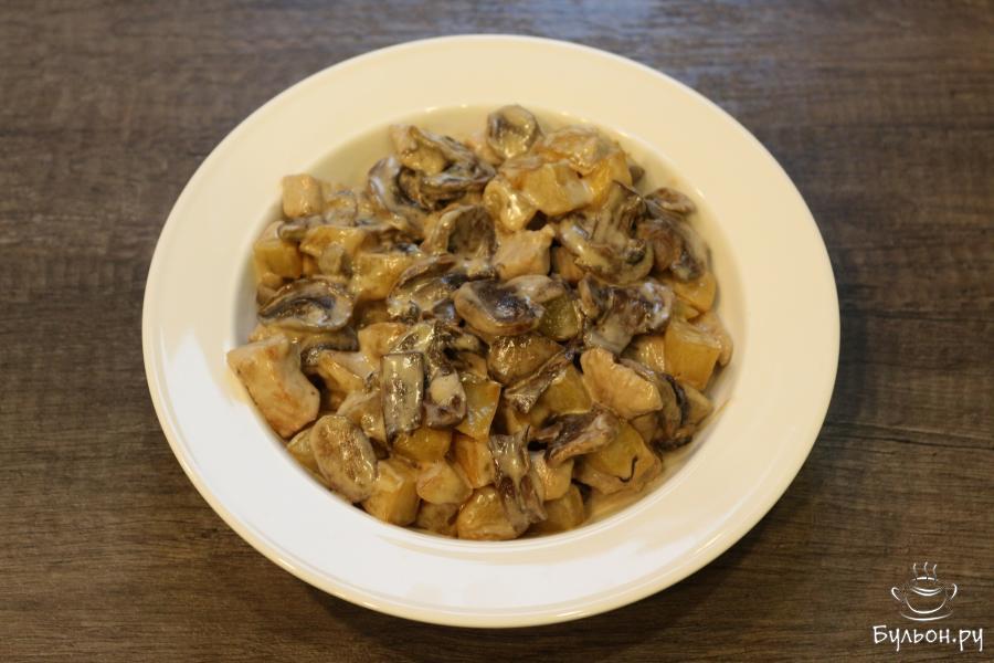 Картофель со свининой и грибами в сливках - это блюдо, которое подойдет для полноценного приема пищи, это может быть ужин или обед. Оно очень сытное, содержит много каллорий, жирное, не только потому, что все ингредиенты жарятся на растительном масле, но и потому, что в рецепте используются ну очень жирные сливки, аж 35 процентов. И вообще грибы, картофель, свинина и сливки сами по себе тяжелые продукты. Но все вместе получается очень вкусно, так что иногда, все же, можно позволить себе такую вкуснятину. Итак, приступим.