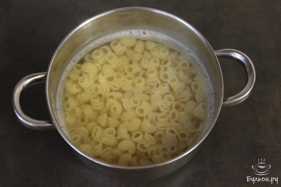 4. Отварите макароны, в соответствии с инструкцией на упаковке. При варке воду посолите. Когда макароны будут готовы, слейте с кастрюли воду, немного оставив для дальнейшего приготовления блюда.