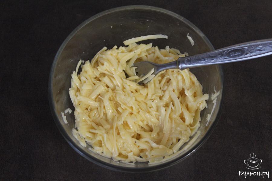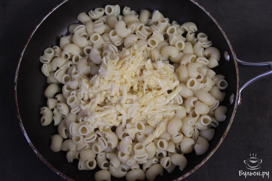 5. На сковороду выложите отварные макароны, добавьте немного отвара из-под макарон, влейте сырно-яичную смесь и на минимальном огне, постоянно помешивая, готовьте макароны до полного расплавления сыра.