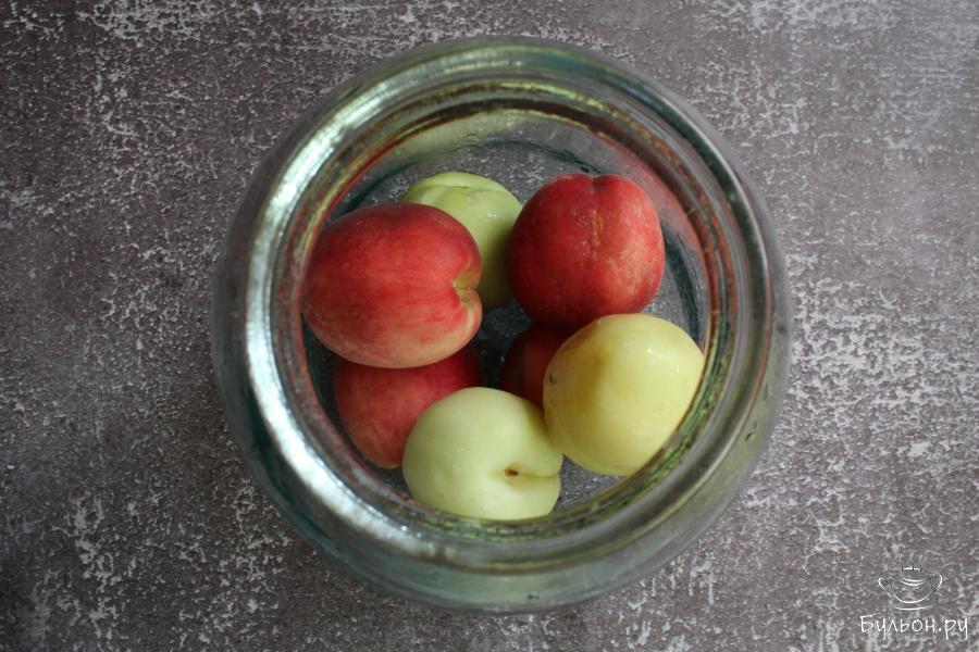 Компот на зиму из целых персиков и нектаринов, по этому рецепту, получается прозрачный, красивого нежного цвета. Напиток ароматный, вкусный, полезный. Зимой такой компот порадует всю семью своим летним вкусом. Готовится компот просто и быстро. Количество продуктов дано на одну двухлитровую банку. Фрукты для приготовления выбирайте крупные, сладкие, спелые, но не мягкие. Сахара в зимний компот всегда можно добавить столько, сколько вам нравится. Сироп варим отдельно, поэтому количество сахара можно регулировать.