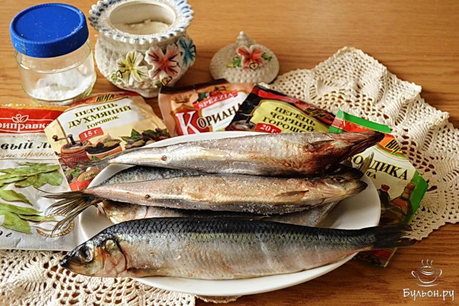 1. Перед засолкой рыбу не нужно чистить или потрошить. Все, что нам нужно сделать - это промыть тушки. Соли и сахара нужно отмерять необходимое количество, а вот остальных ингредиентов можно смело брать больше или меньше.