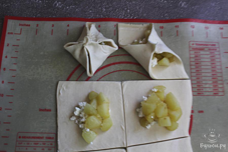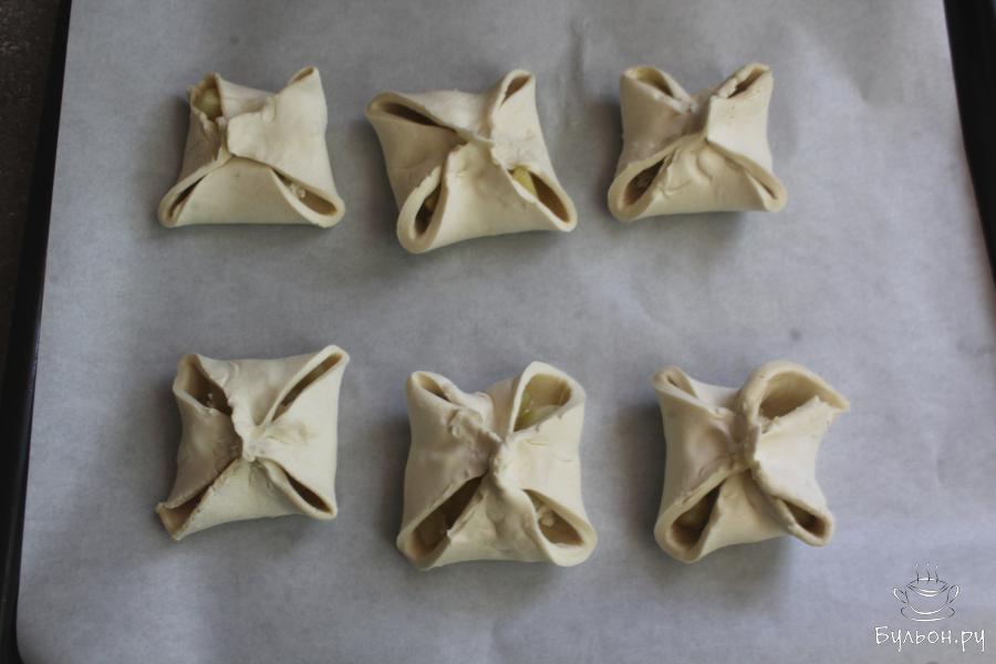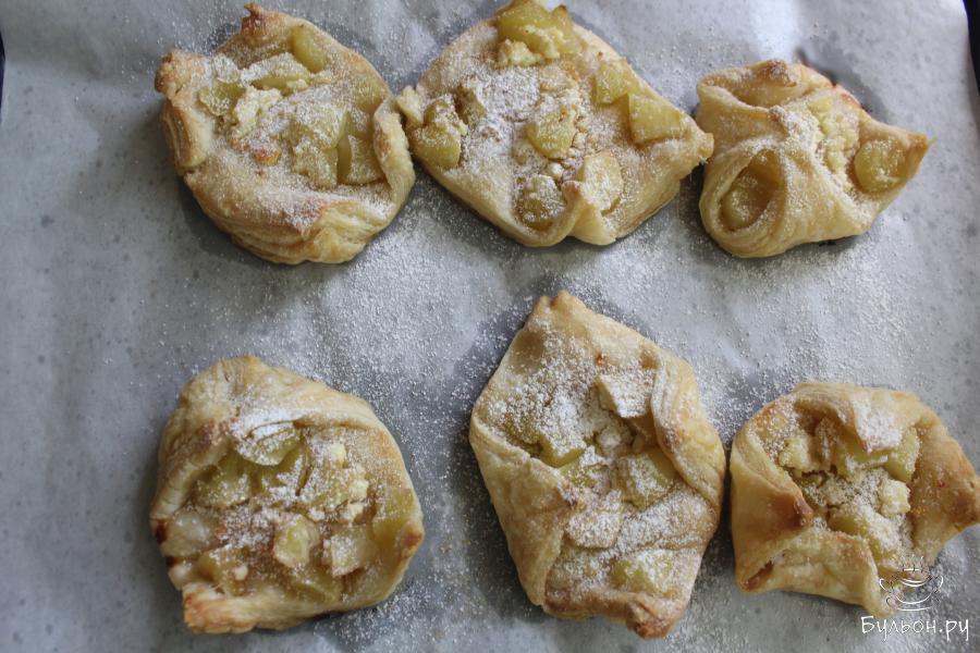 7. Духовку разогреть до 200 градусов и выпекать слойки 15-20 минут. Готовые слойки, по желанию, украсить сахарной пудрой.