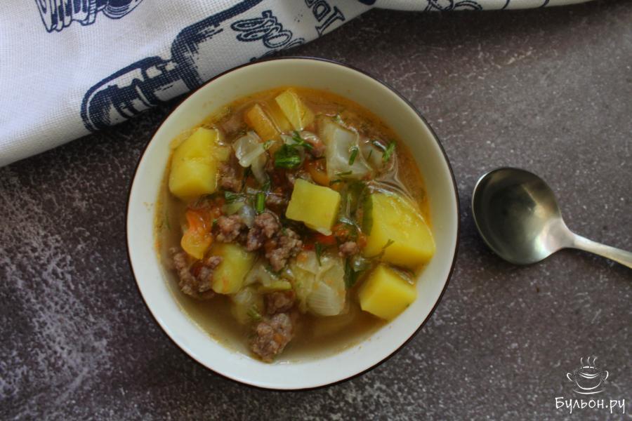 Мы привыкли, что если суп с капустой, то это борщ. Предлагаю приготовить чешский суп с мясным фаршем и овощами. Это вкусный и необычный суп, тут есть и капуста, и другие аппетитные овощи. Суп получается легкий, но насыщенный, он вкусный, ароматный, пикантный. Такой суп порадует вас своим новым вкусом. Готовится суп просто, быстро и из доступных продуктов. Зелень для приготовления всегда можно взять ту, которую любите.