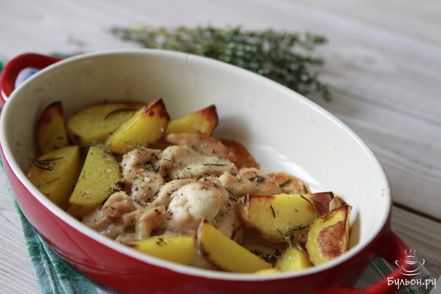 Куриное филе запеченное с картофелем сытное, простое и очень вкусное блюдо. Оно вполне может украсить любое праздничное застолье или семейный ужин. Кусочки куриного филе получаются очень нежными и сочными, а клубни картофеля запекается до золотистой корочки. В сочетании с ароматными травами или например со сметанным соусом, луковой заправкой блюдо приобретает неповторимый вкус и аромат. Для полной гармонии куриное филе с картофелем приправляют розмарином и тимьяном, которые прекрасно гармонируют между собой и передают ингредиентам весь букет своих ароматов. Блюдо не прихотливо в приготовлении и вполне заслуживает внимания.