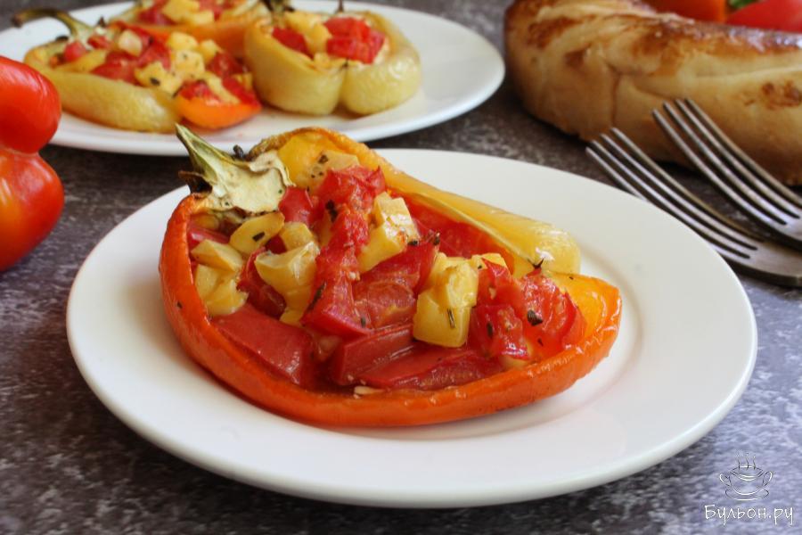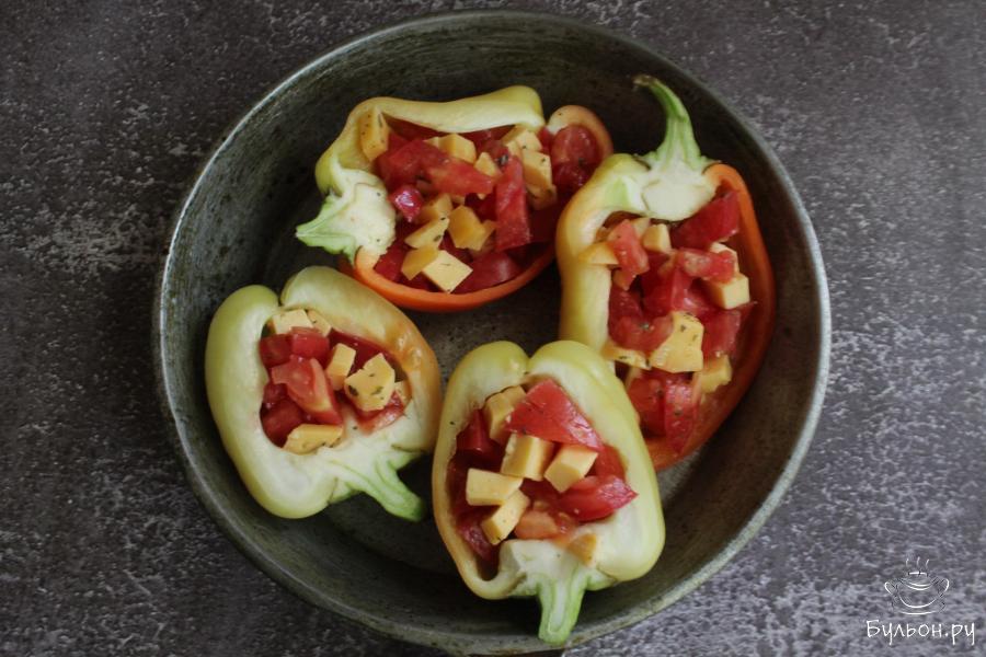 Болгарские перцы с сыром и помидорами в духовке, можно приготовить на завтрак, полдник или на быстрый перекус. Это летнее блюдо получается вкусное, сочное, яркое, легкое и сырное. Если вы любите ароматные травы, то можно добавить их в начинку, помимо базилика. Готовится блюдо очень просто и быстро, буквально за полчаса у вас будет все готово. Любители овощных блюд будут довольны вкусом перцев с сыром.