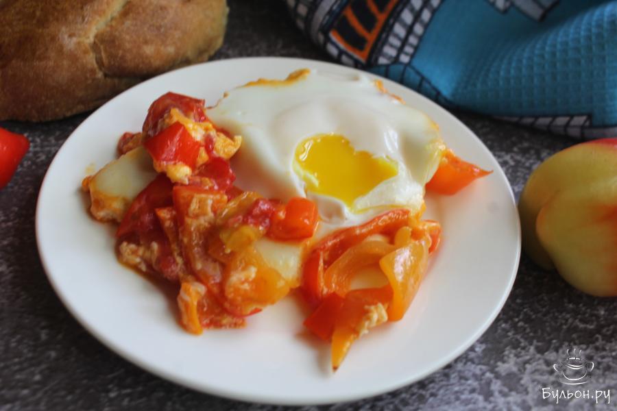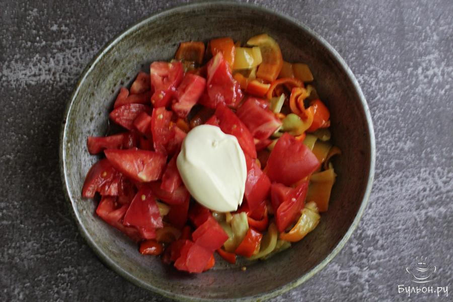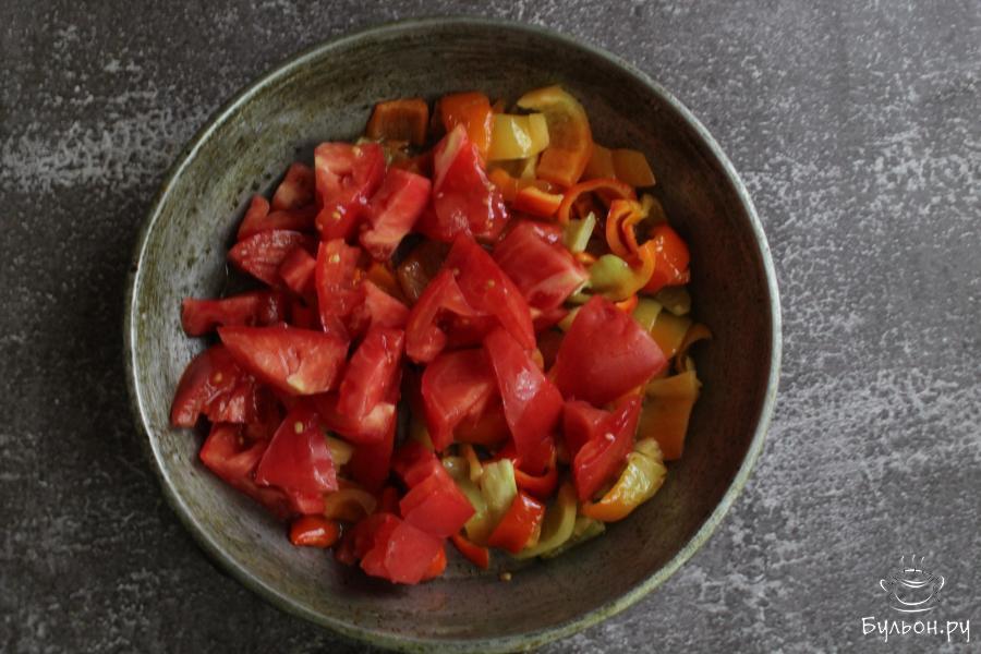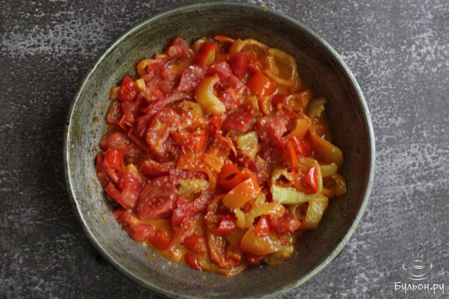 1. Болгарский перец почистить, промыть и нарезать полосками. Обжарить перец на сковороде с разогретым маслом 3-4 минуты.