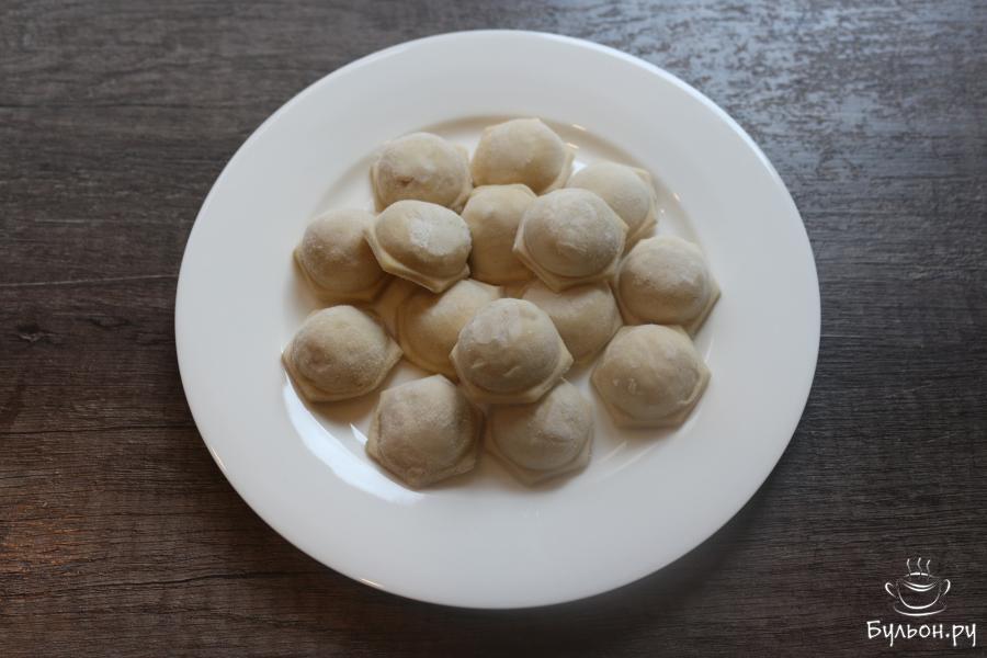 1. Используйте полуфабрикат или налепите домашние пельмени. Я использовала именно такие. И были у меня пельмени со свиным фаршем.