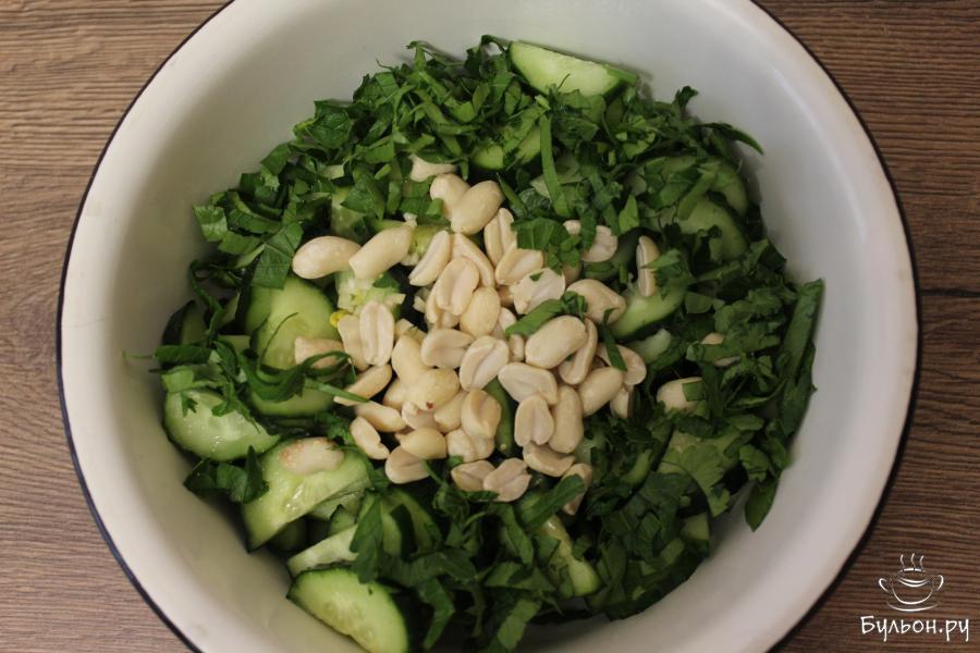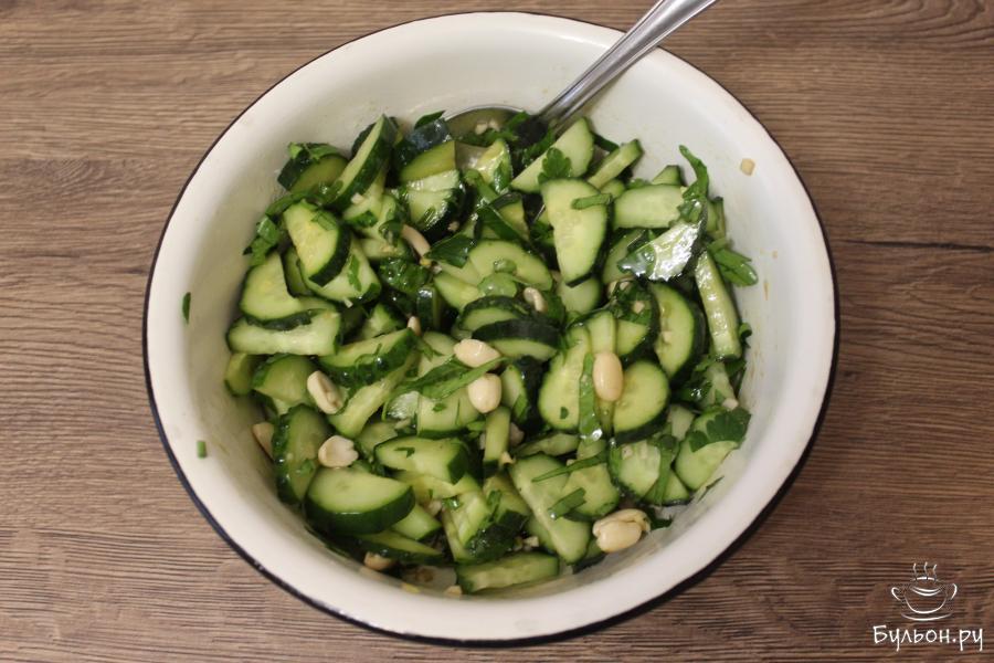 Попробуйте приготовить огуречный салат с арахисом. Он станет отличным дополнением к основному блюду, будь то мясо или рыба, также такой салат будет отличным дополнением к любому гарниру. Свежесть огурцов в сочетании с острым чесноком и ароматным кунжутным маслом прекрасно раскроются и с картофельным пюре, и гороховой кашей, и рассыпчатым рисом. В данном рецепте можно использовать арахис с солью. Хочется отметить, что этот салатик подходит вегетарианцам.