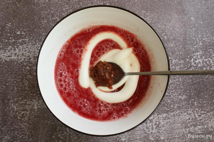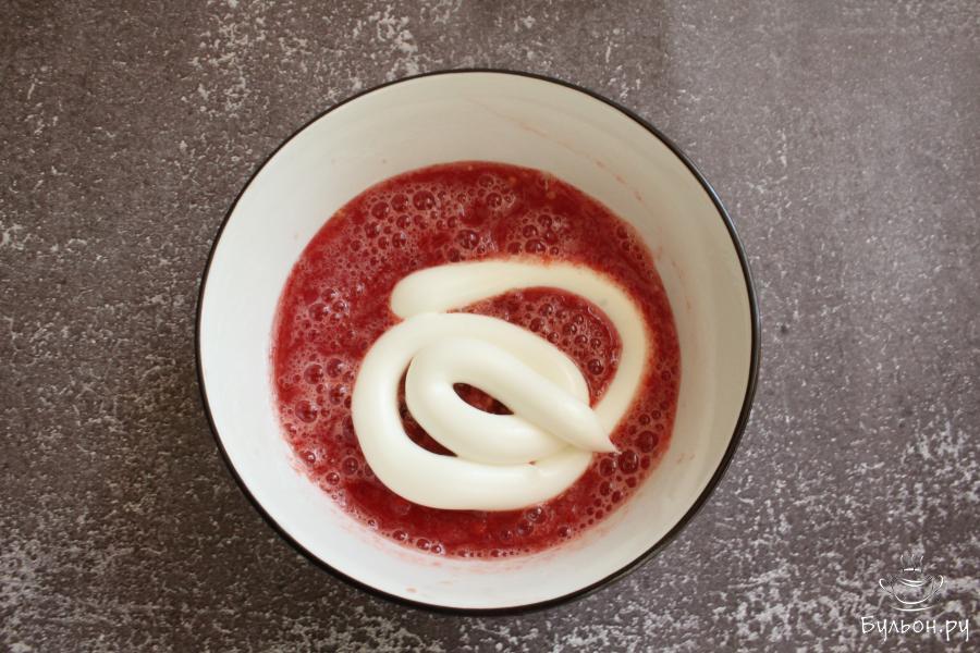 5. Приготовить соус-заливку. Помидоры перекрутить через мясорубку. Добавить в томатную массу майонез.