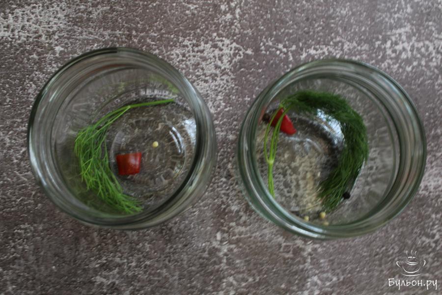 7. С банок слить воду, залить горячим овощным маринадом и закрыть баночки закручивающимися крышками. Банки перевернуть, укутать и дать остыть.