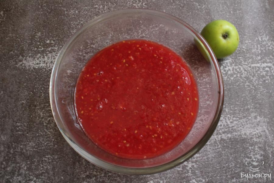Пряный томатный соус с готовой аджикой можно подать как самостоятельное блюдо, а можно использовать для приготовления разнообразных блюд. Соус получается очень вкусный, невероятно душистый, легкий. Его даже просто с кусочком свежего хлеба съесть вкусно. Аджику для приготовления нужно брать без томатной основы, настоящую, приготовленную из пряностей, чеснока и перца чили. Яблоки для такого соуса подходят совершенно любые.