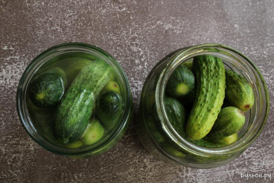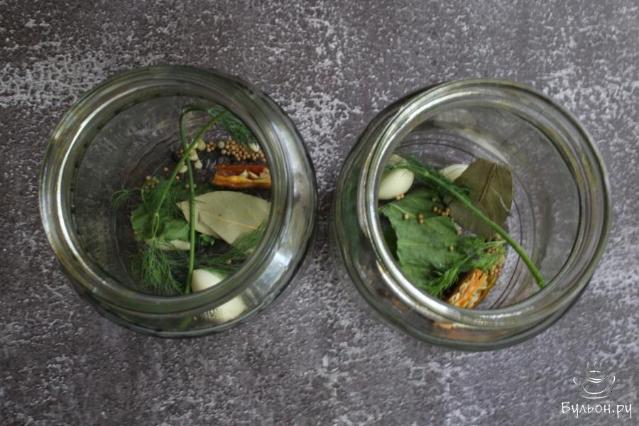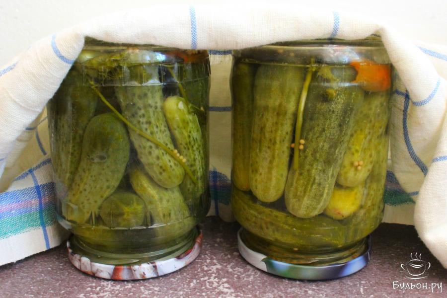 7. Залить в банки кипящий рассол и закрыть банки закручивающимися крышками. Банки перевернуть, укутать и оставить так остывать.