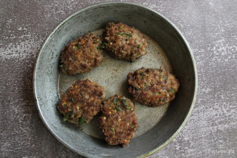 5. Руками сформировать котлеты, фарш не липнет. На сковороде разогреть масло и жарить котлеты с двух сторон, по несколько минут с каждой стороны.