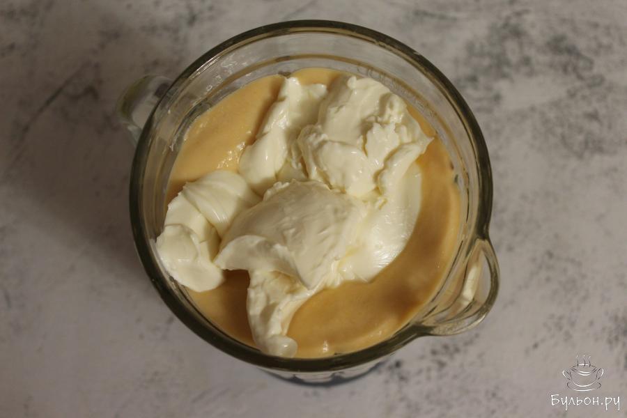 4. В получившуюся кремово-овощную массу добавьте плавленый сыр и снова взбейте все ингредиенты в блендере.