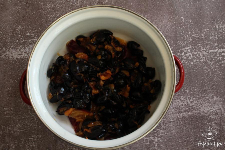 1. Сливы почистить от косточек. Поставить посуду на огонь, сразу помешивать, через несколько минут слива должна дать сок.