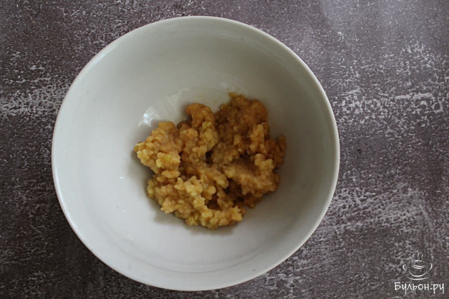 4. Для начинки: яблоки почистить, натереть на крупной терке. Если нужно, добавить в начинку сахар и перемешать.