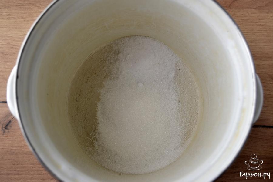 6. Слейте воду из банки в кастрюлю. Поставьте на огонь, доведите до кипения, проварите пару минут, чтобы сахар и соль полностью растворились.