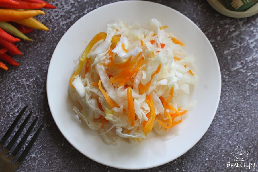 Быстрая маринованная капуста с овощами - это замечательная овощная закуска, которая готовится очень просто и достаточно быстро. Уже через пару часов вы сможете подать вкусную капусту к столу. Легкая и сочная, яркая и ароматная, такая капуста отлично подходит как для повседневного, так и для вегетарианского и постного меню. Если вы любите острые овощные закуски, то добавьте по вкусу свежий острый перчик.