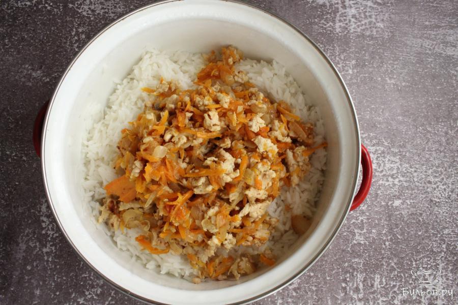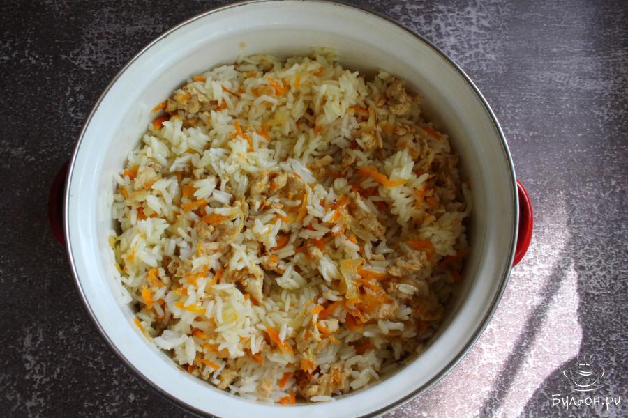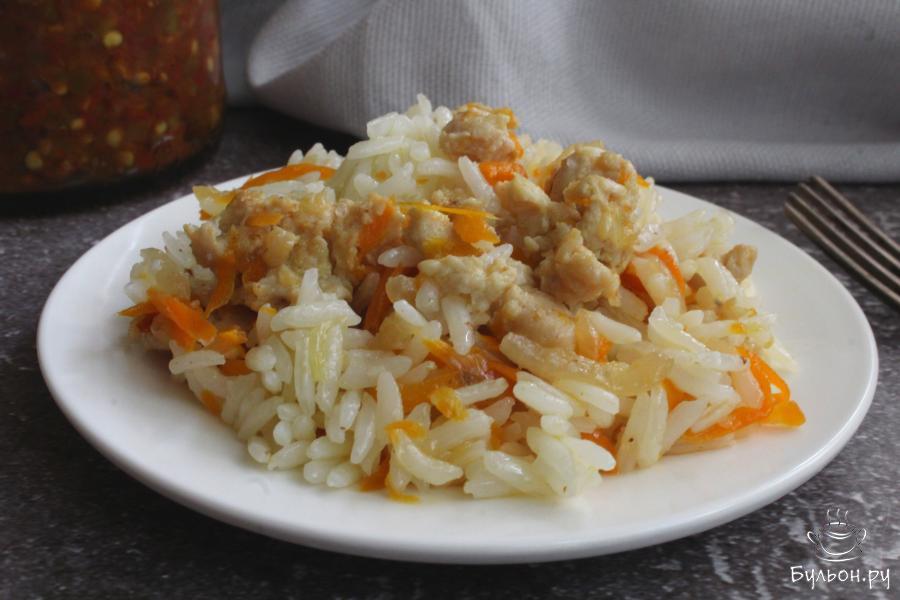 Рис с куриным фаршем и овощами - это простое и сытное блюдо, которое отлично подойдет для вкусного обеда. Готовится такое блюдо очень просто и оно порадует всех любителей плова с курицей, вкус похож. Рис для приготовления желательно брать твердый, длиннозерновой, он получается рассыпчатый. Всегда можно добавить в это блюдо свои любимые пряности. Попробуйте приготовить такое блюдо, вы потратите мало времени и сил, а результат будет очень вкусный!